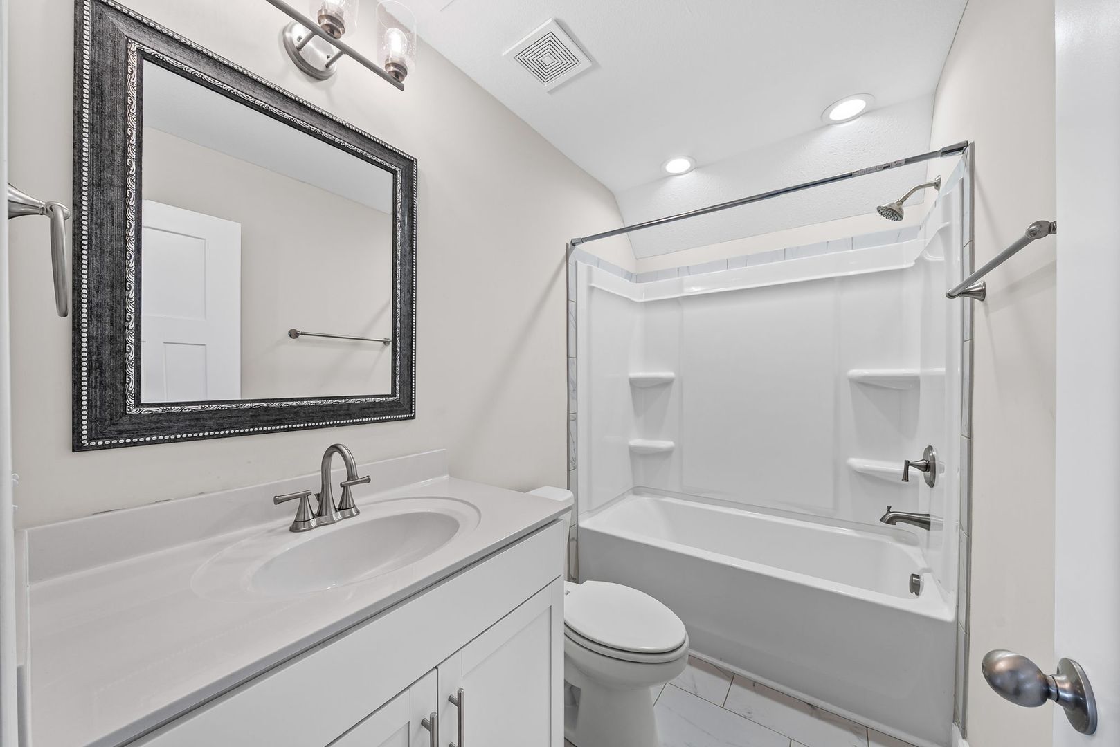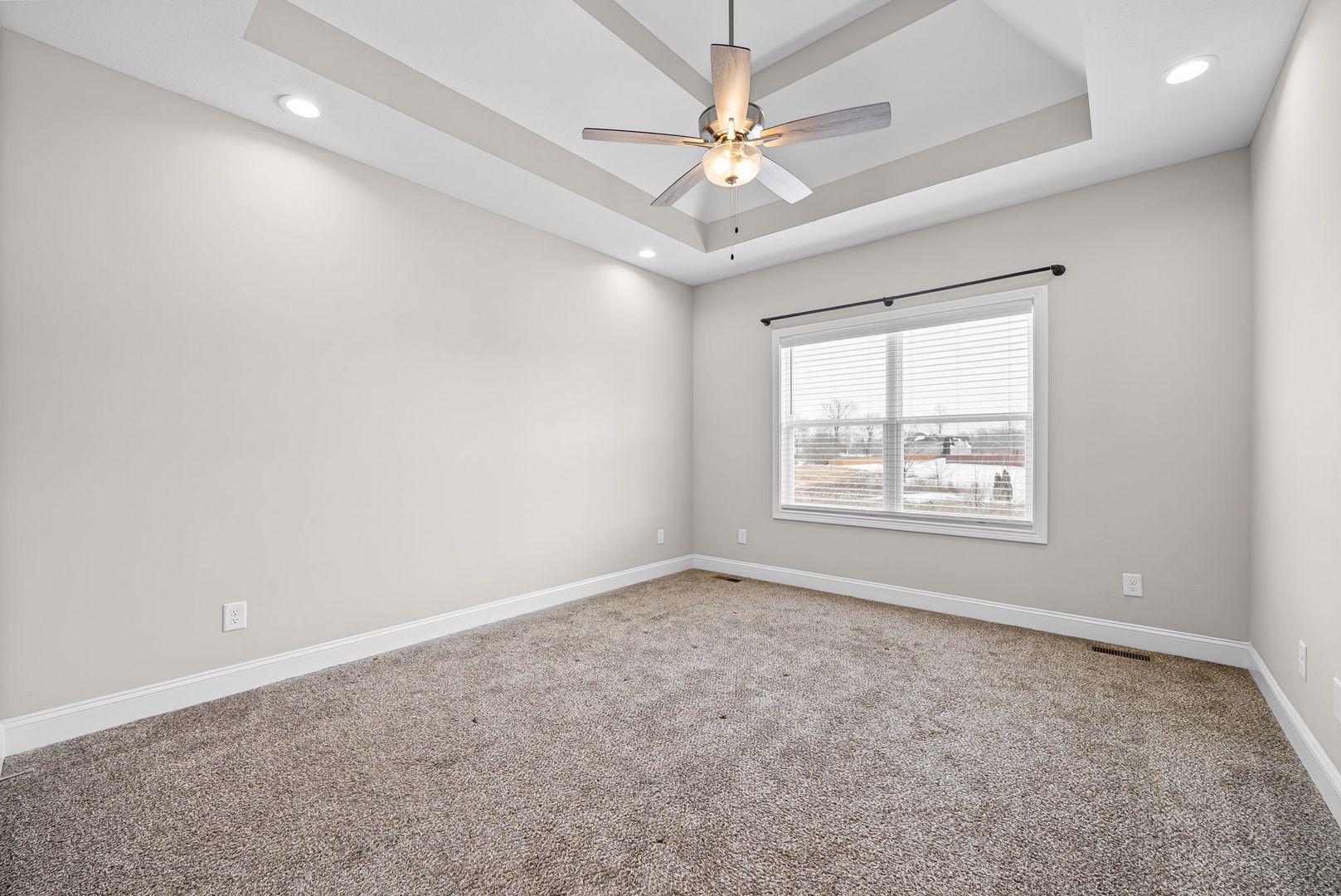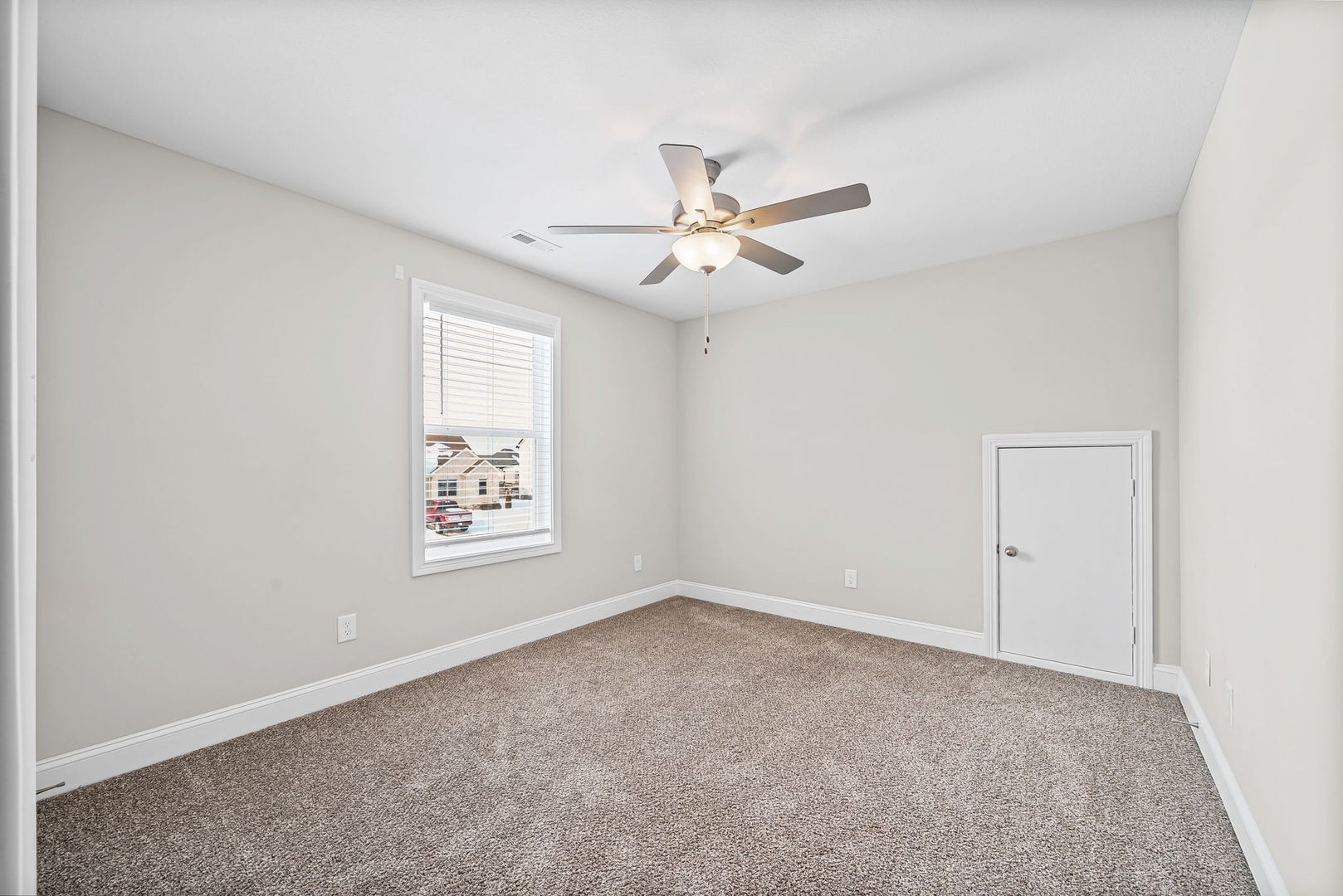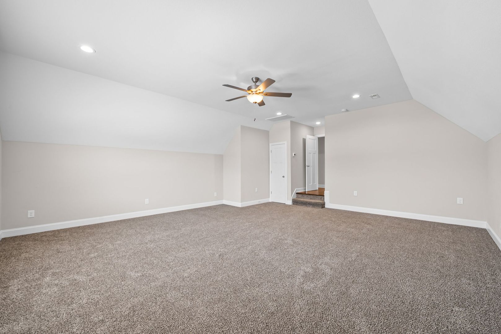 The primary suite is conveniently located on the main level and includes tray-style ceilings, dual vanities, a standing shower, and a large walk-in closet. Upstairs, you’ll find spacious secondary bedrooms, each equipped with ceiling fans for added comfort, along with a large bonus room that provides flexible space for a media room, office, or play area.