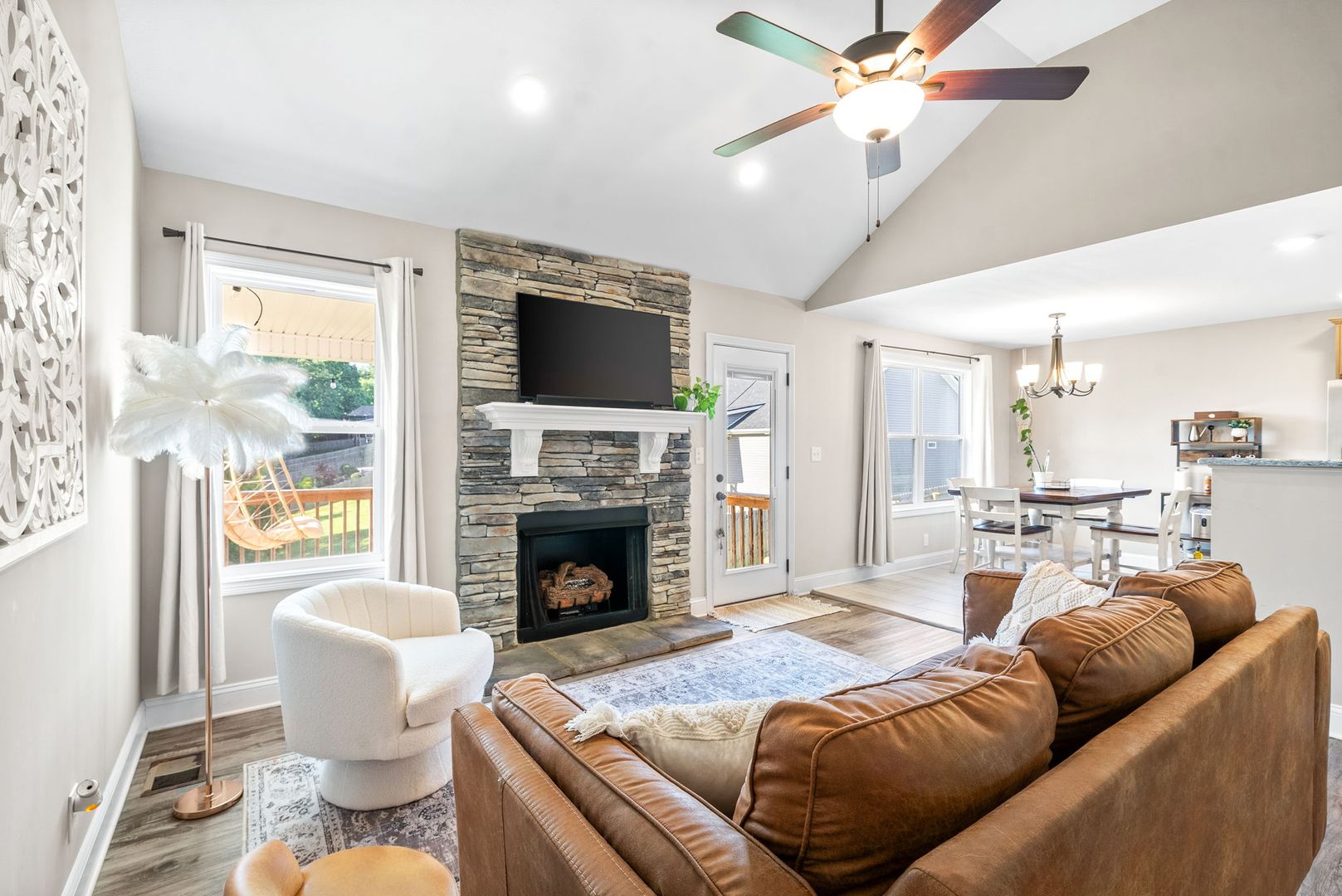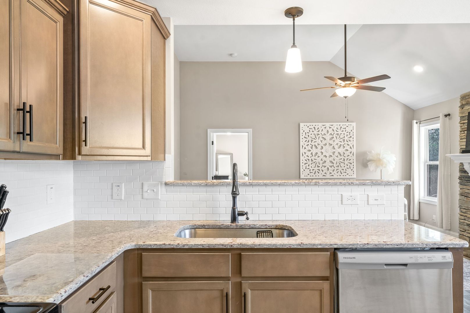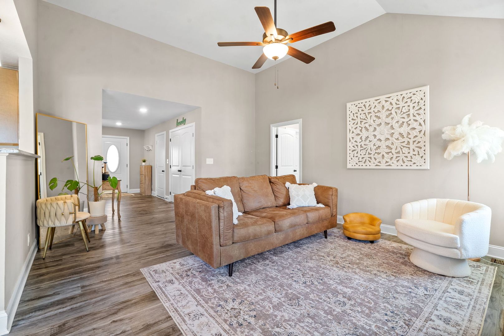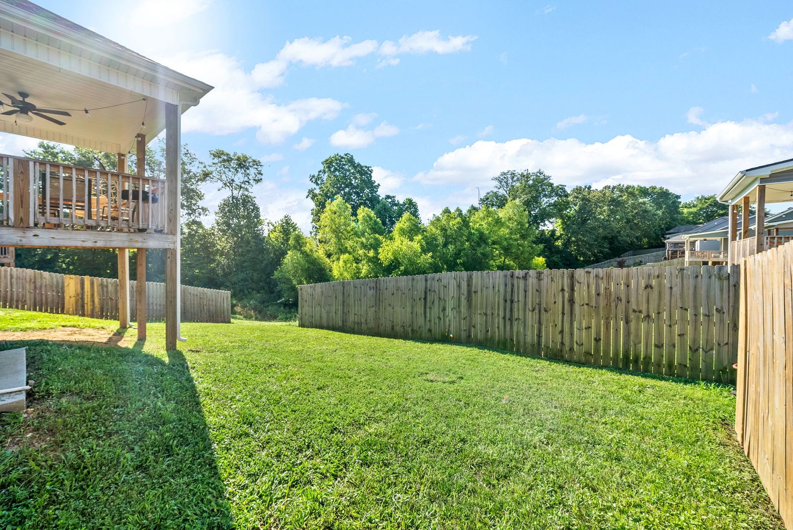 Introducing a 3-bedroom, 2-bathroom home near Fort Campbell Military Base. The inviting living room features vaulted ceilings and a cozy gas fireplace, creating a warm and spacious atmosphere for relaxing and entertaining. The kitchen offers ample cabinet and counter space, providing a functional and stylish area for cooking and dining. The master bedroom exudes an open feel with a tray ceiling, and the en-suite master bathroom boasts his and hers sinks, as well as a standing shower for convenience and luxury. Additionally, the home features a covered deck with stairs leading to the backyard, perfect for outdoor activities and relaxation. The property is pet-friendly, offering the perfect setting for a comfortable and enjoyable living experience.