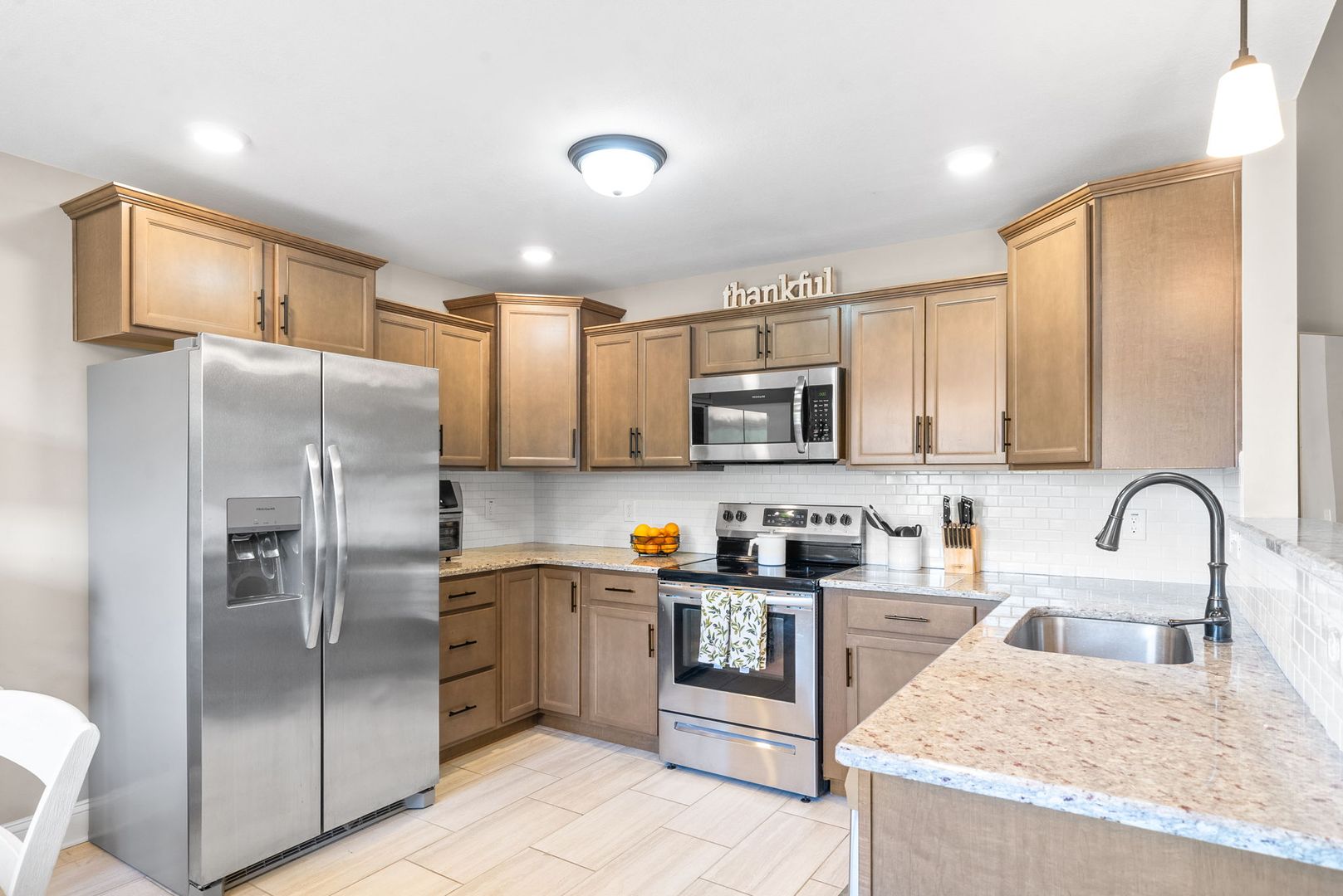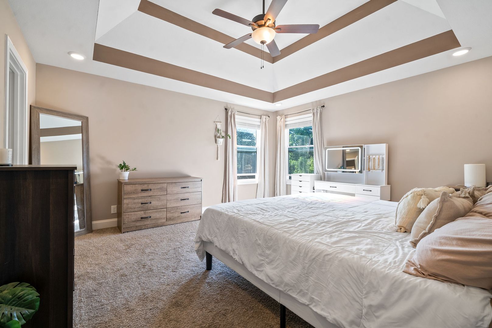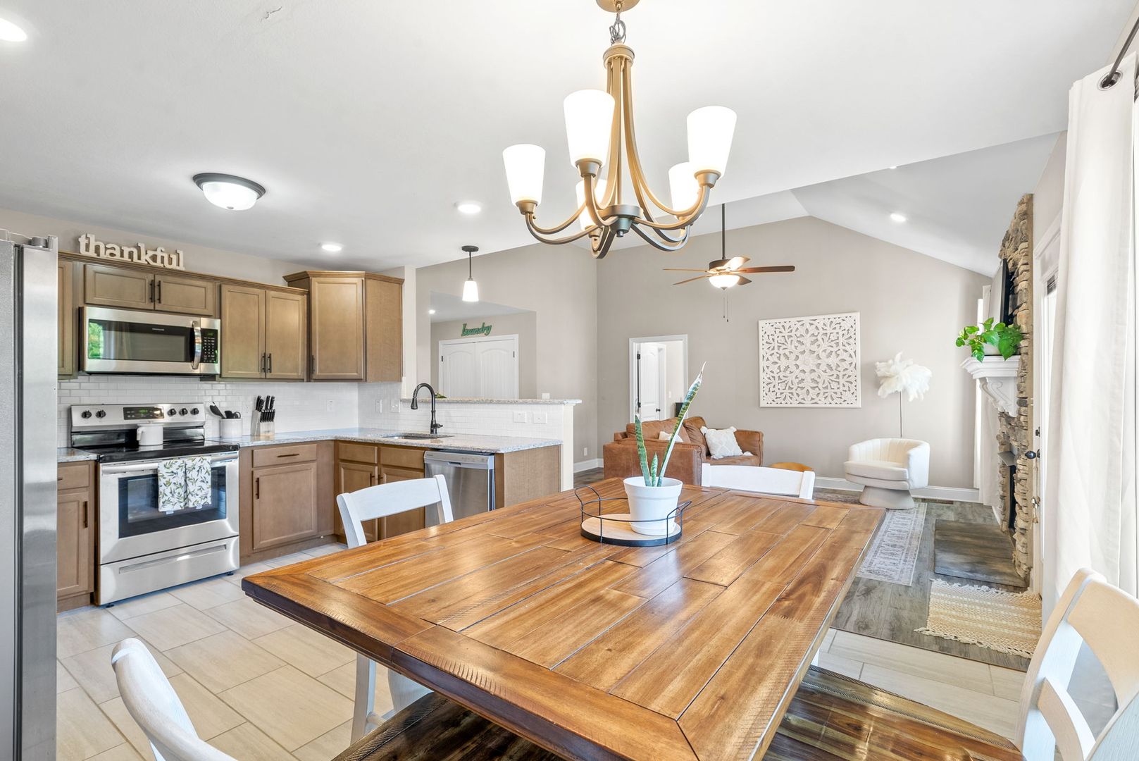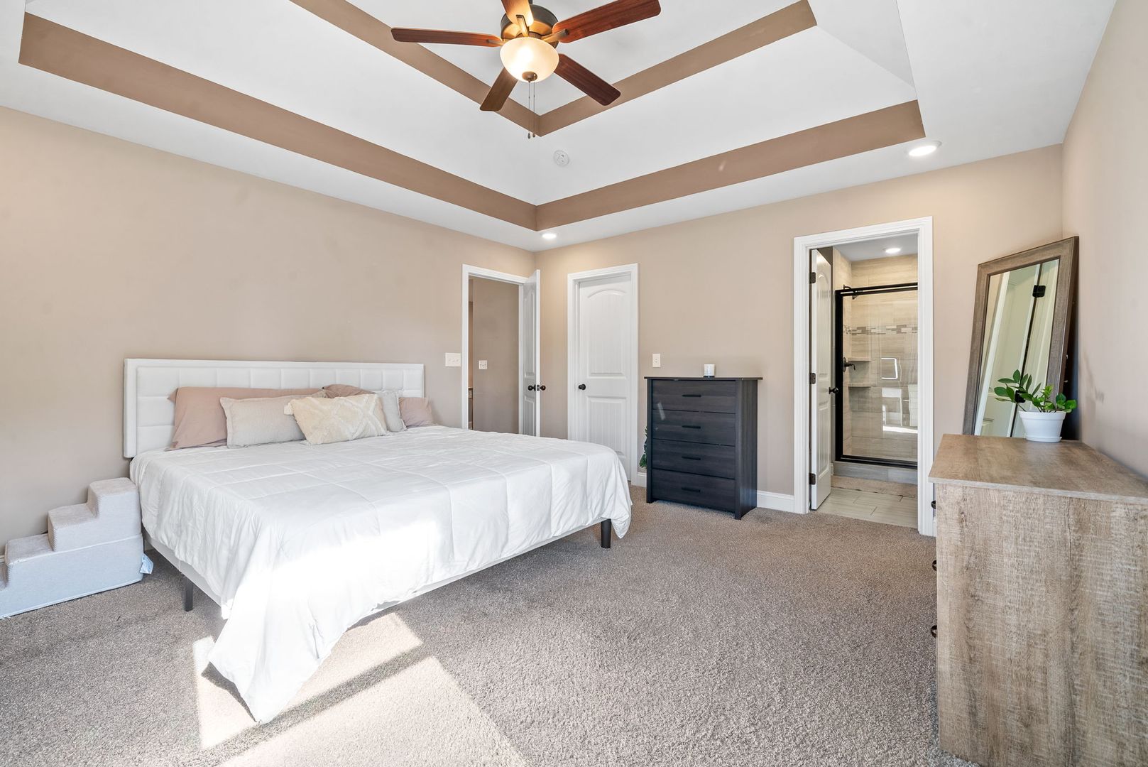Introducing a 3-bedroom, 2-bathroom home near Fort Campbell Military Base. The inviting living room features vaulted ceilings and a cozy gas fireplace, creating a warm and spacious atmosphere for relaxing and entertaining. The kitchen offers ample cabinet and counter space, providing a functional and stylish area for cooking and dining. The master bedroom exudes an open feel with a tray ceiling, and the en-suite master bathroom boasts his and hers sinks, as well as a standing shower for convenience and luxury. Additionally, the home features a covered deck with stairs leading to the backyard, perfect for outdoor activities and relaxation. The property is pet-friendly, offering the perfect setting for a comfortable and enjoyable living experience.