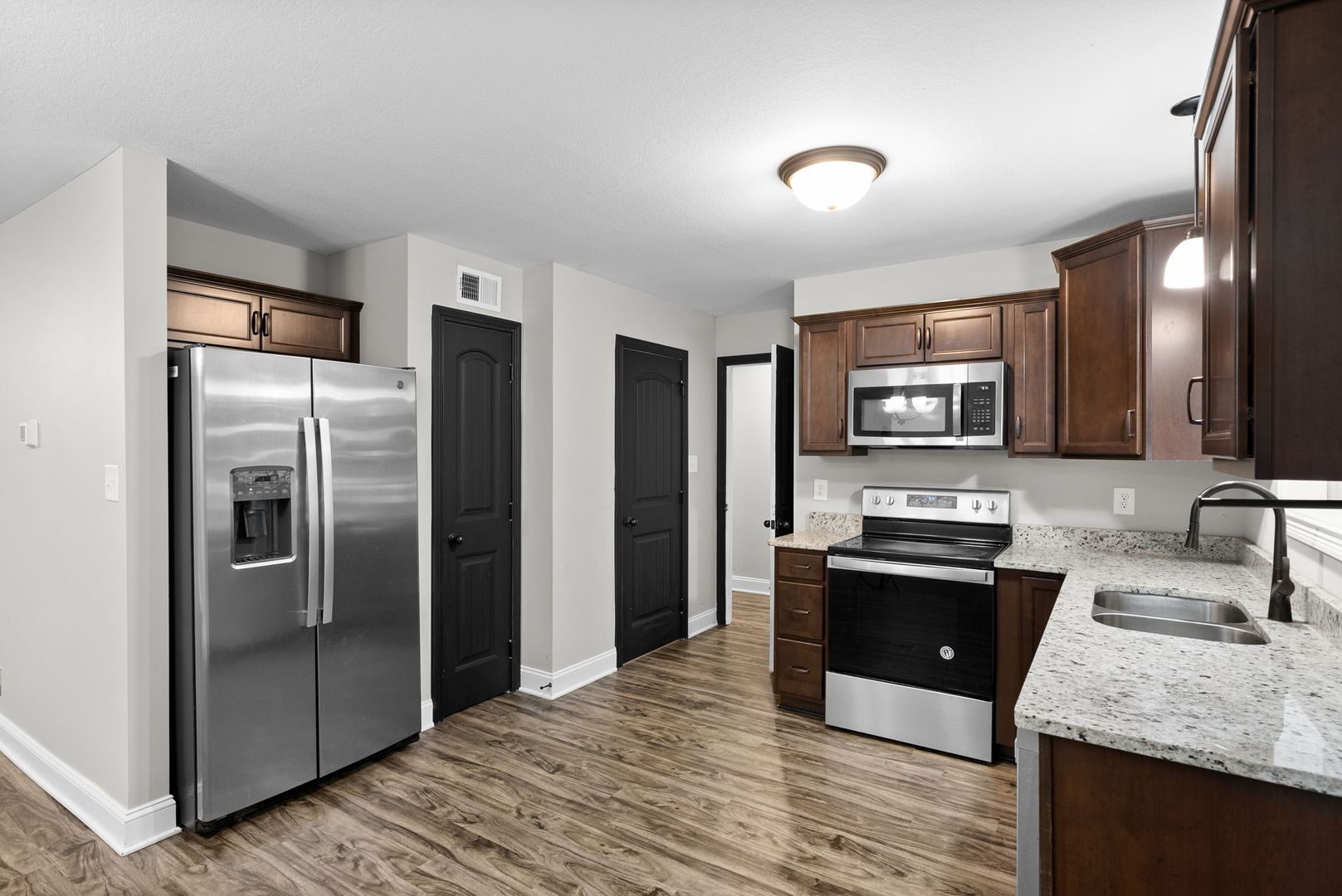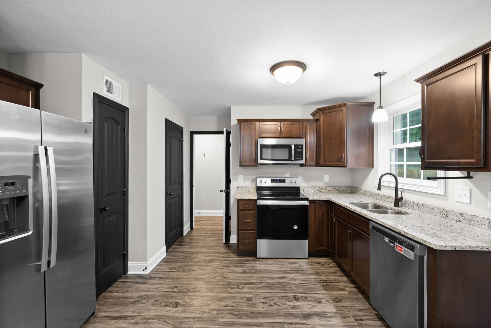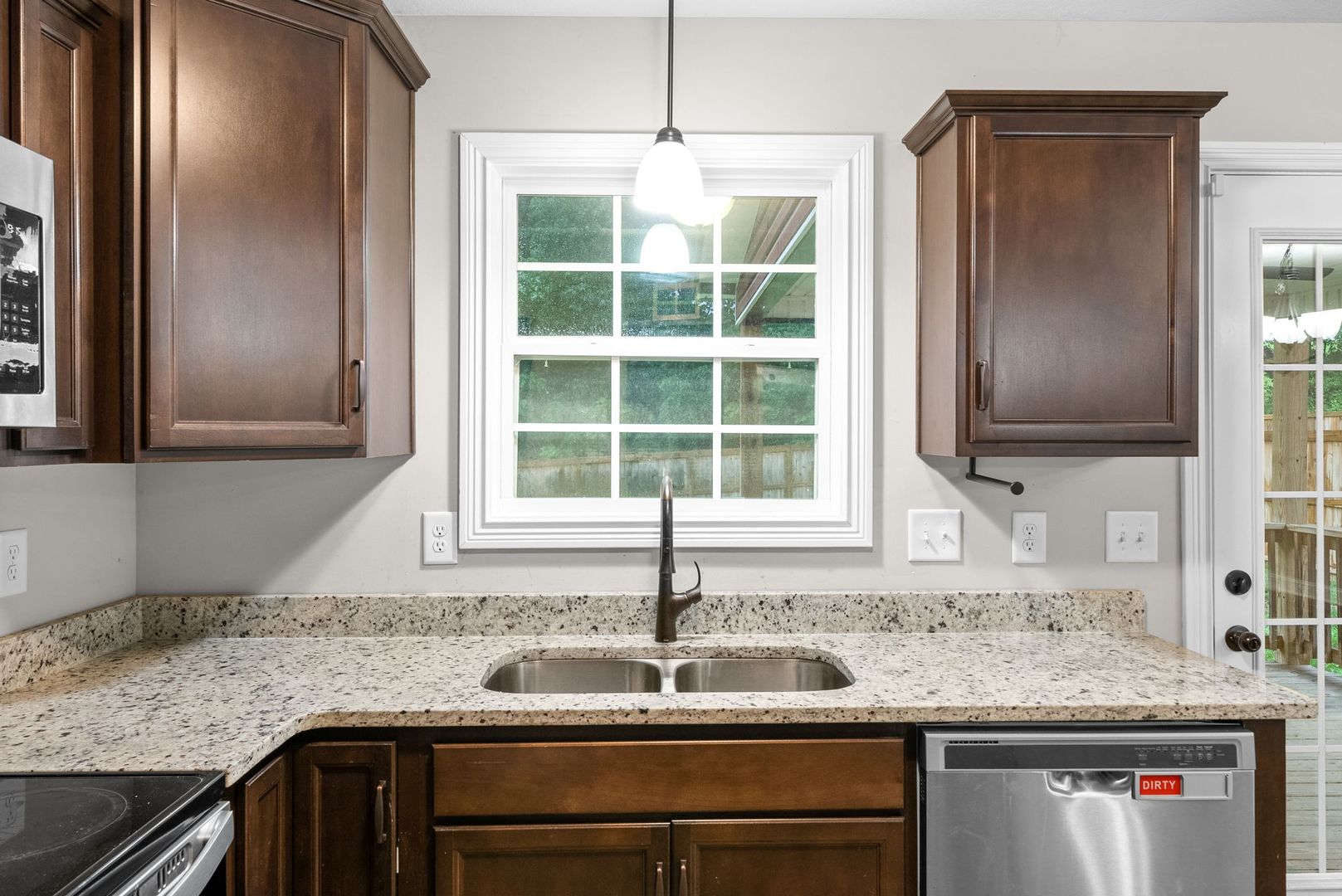 Situated on a large lot, this home features a freshly painted living room, a convenient laundry room, and a half bath on the main level. The updated kitchen includes granite countertops and stainless-steel appliances, perfect for everyday living and entertaining.