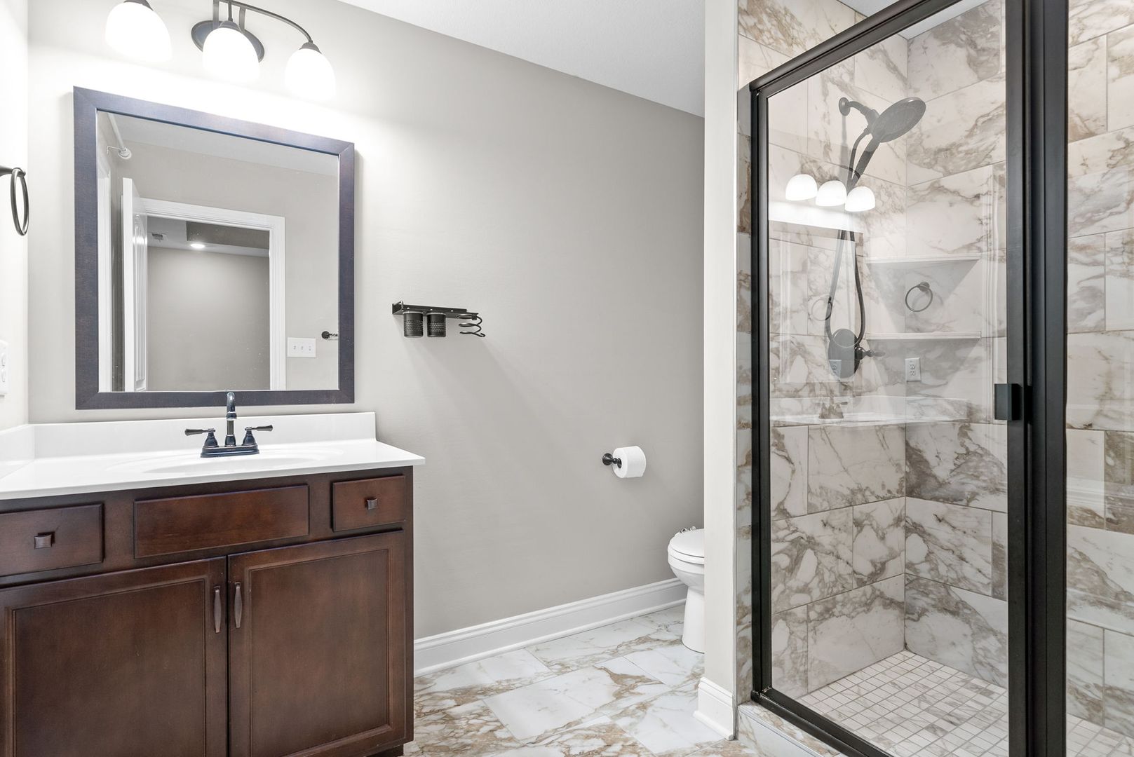 Upstairs, you’ll find three bedrooms, including a spacious primary suite with a private ensuite bathroom, along with two guest rooms and an additional full bath.