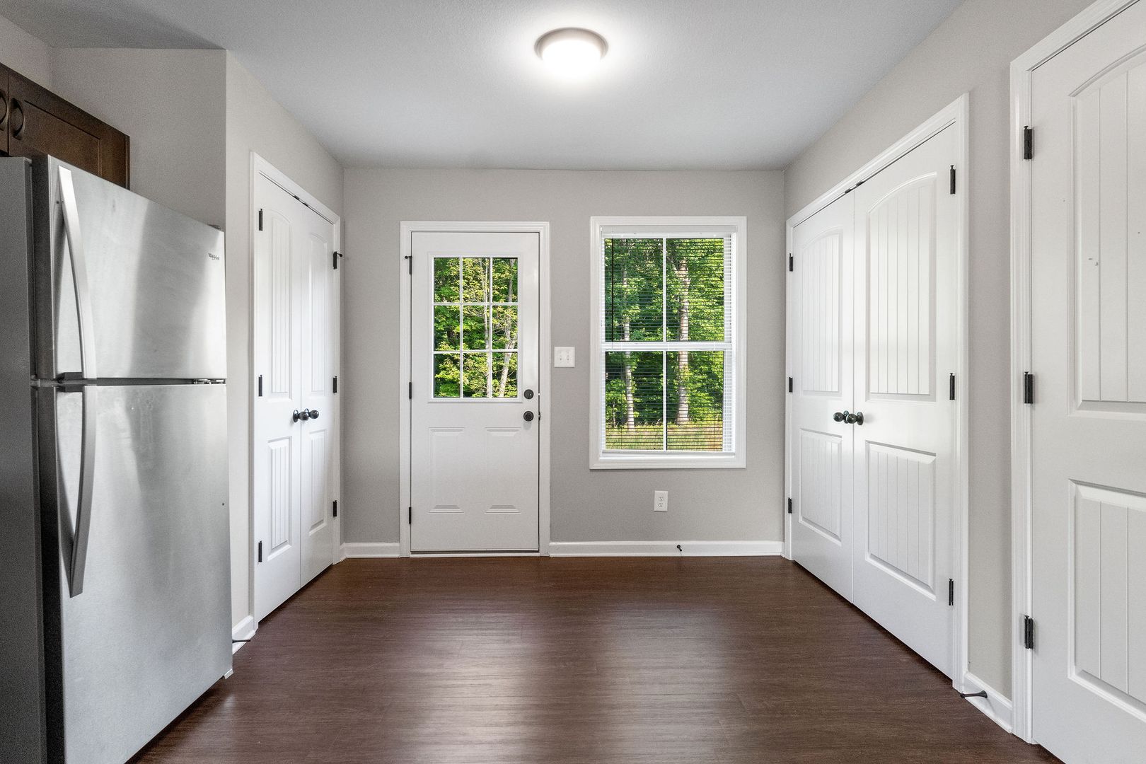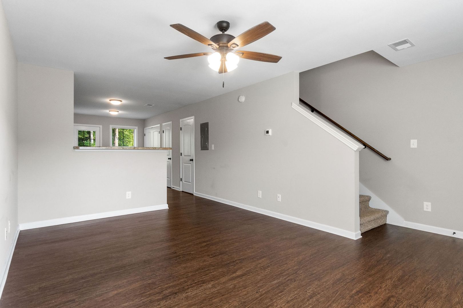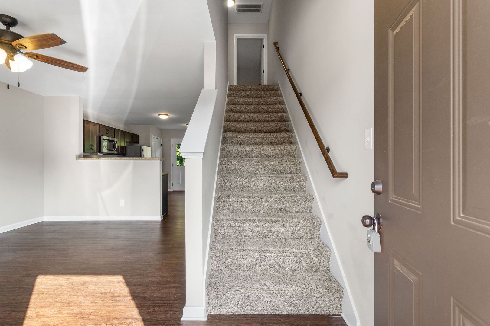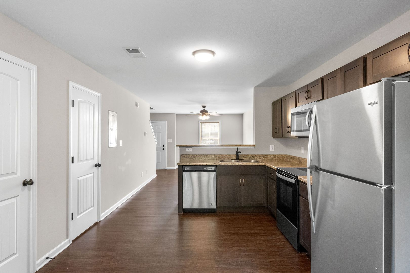 Welcome to your ideal townhome! This beautifully designed two-bedroom, two-and-a-half-bath home is perfectly situated between 101st and Wilma Rudolph, offering easy access to shopping, dining, and Fort Campbell. The main level features laminate flooring throughout and a spacious living area that’s great for relaxing or entertaining. The eat-in kitchen includes stainless steel appliances and a pantry for convenient storage.