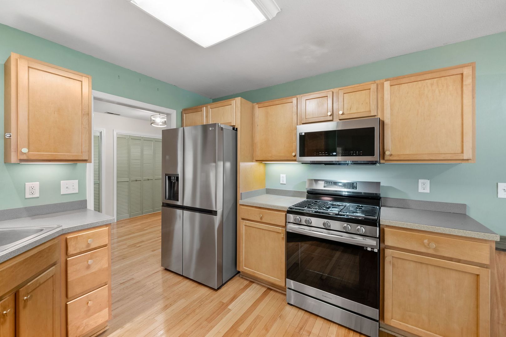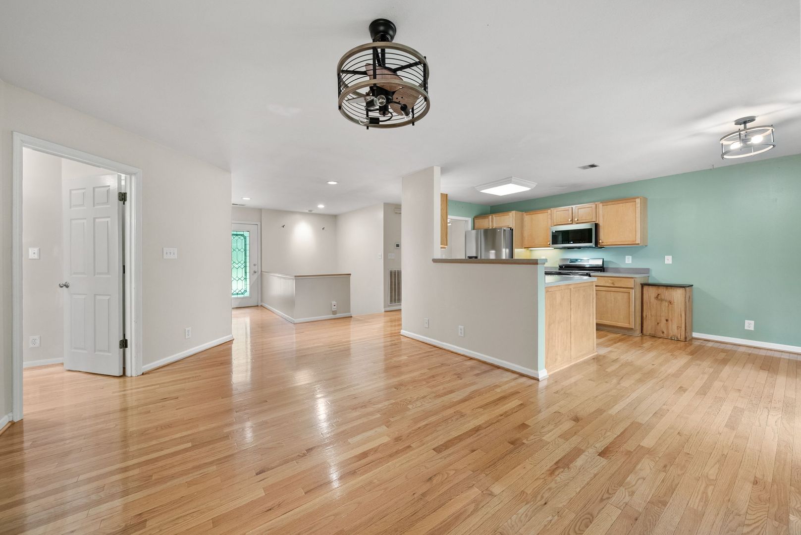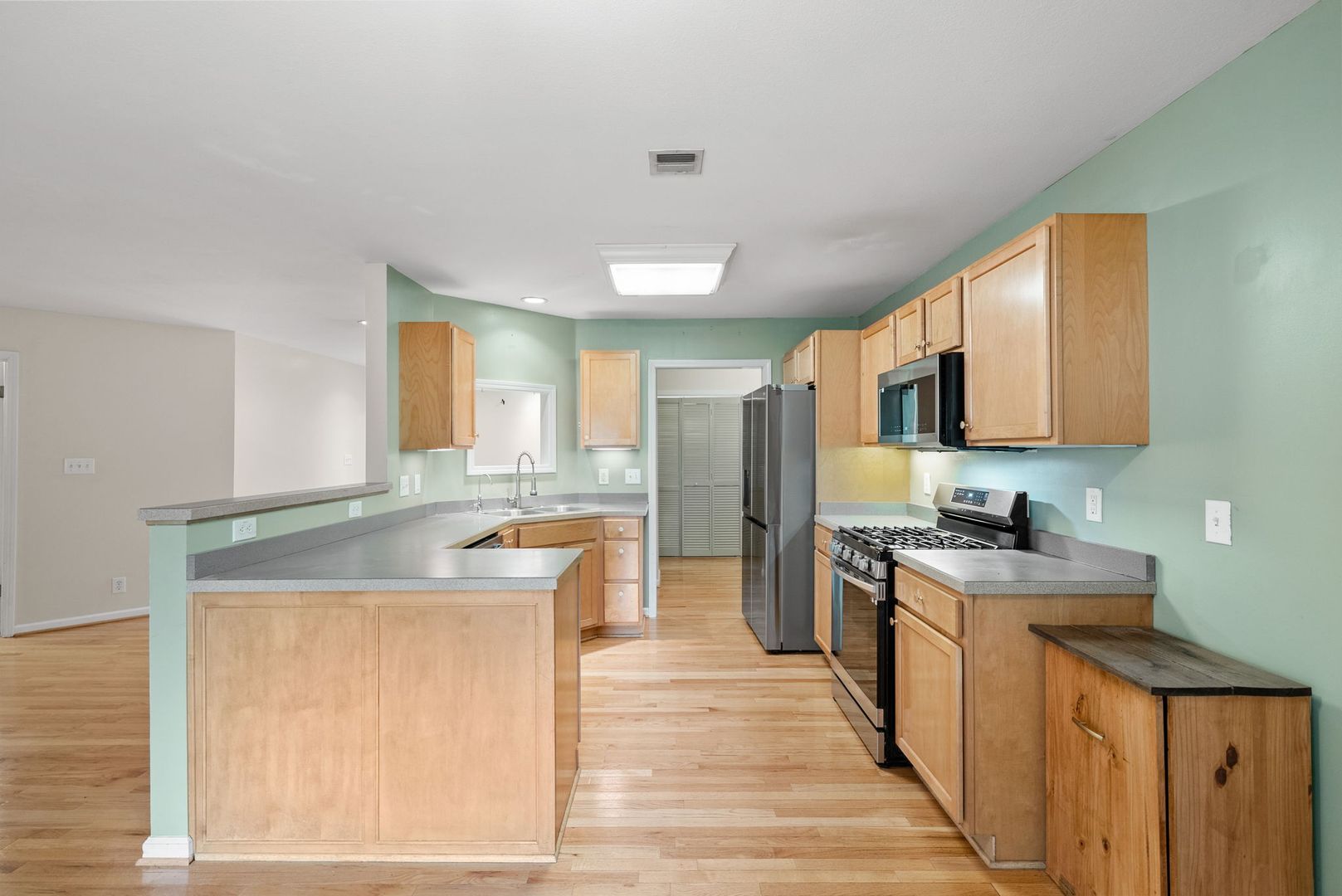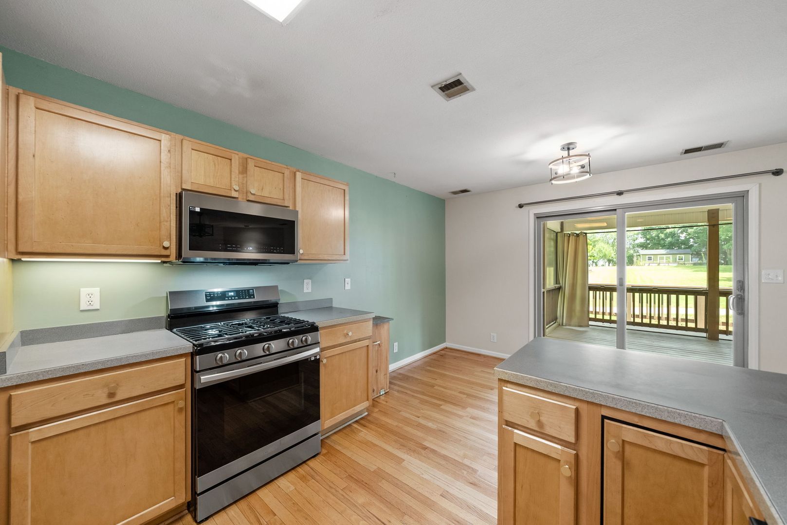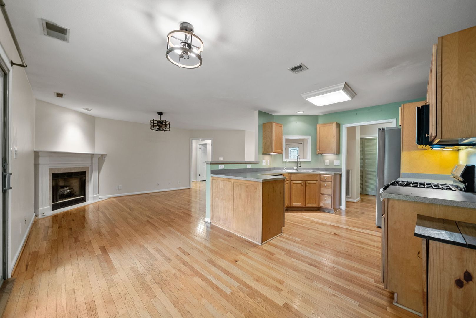 Nestled on 1.6 private acres, this charming single-family home offers 3 spacious bedrooms and 3 full bathrooms. Step inside to find beautiful laminate flooring throughout, an open-concept living area with a cozy gas fireplace, and unique light fixtures that add character and warmth. The kitchen is equipped with stainless steel appliances, a gas stove, and ample cabinet space—perfect for everyday living and entertaining.