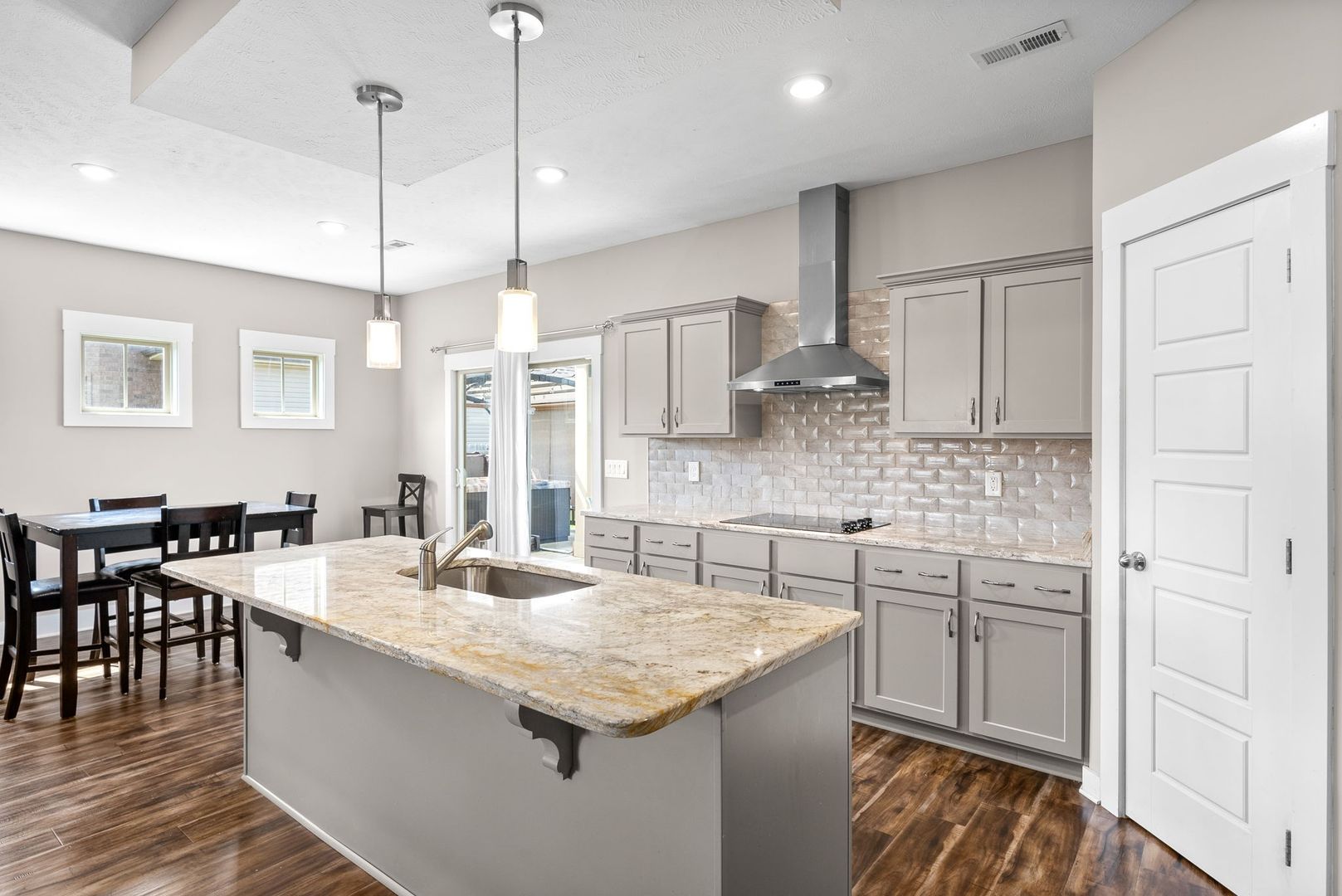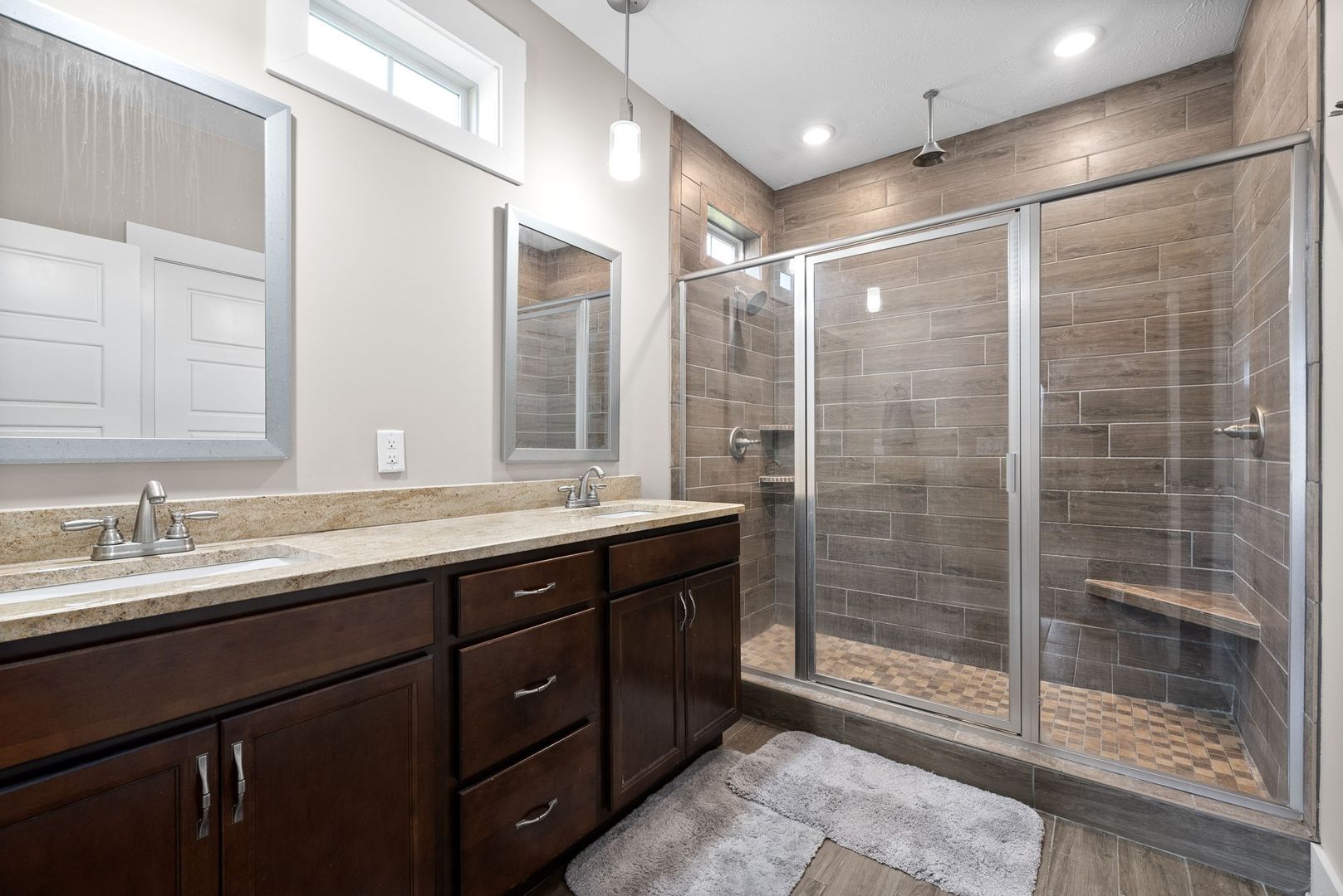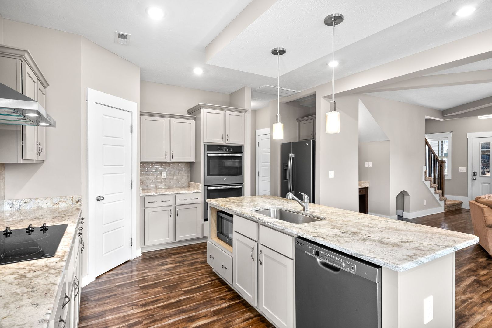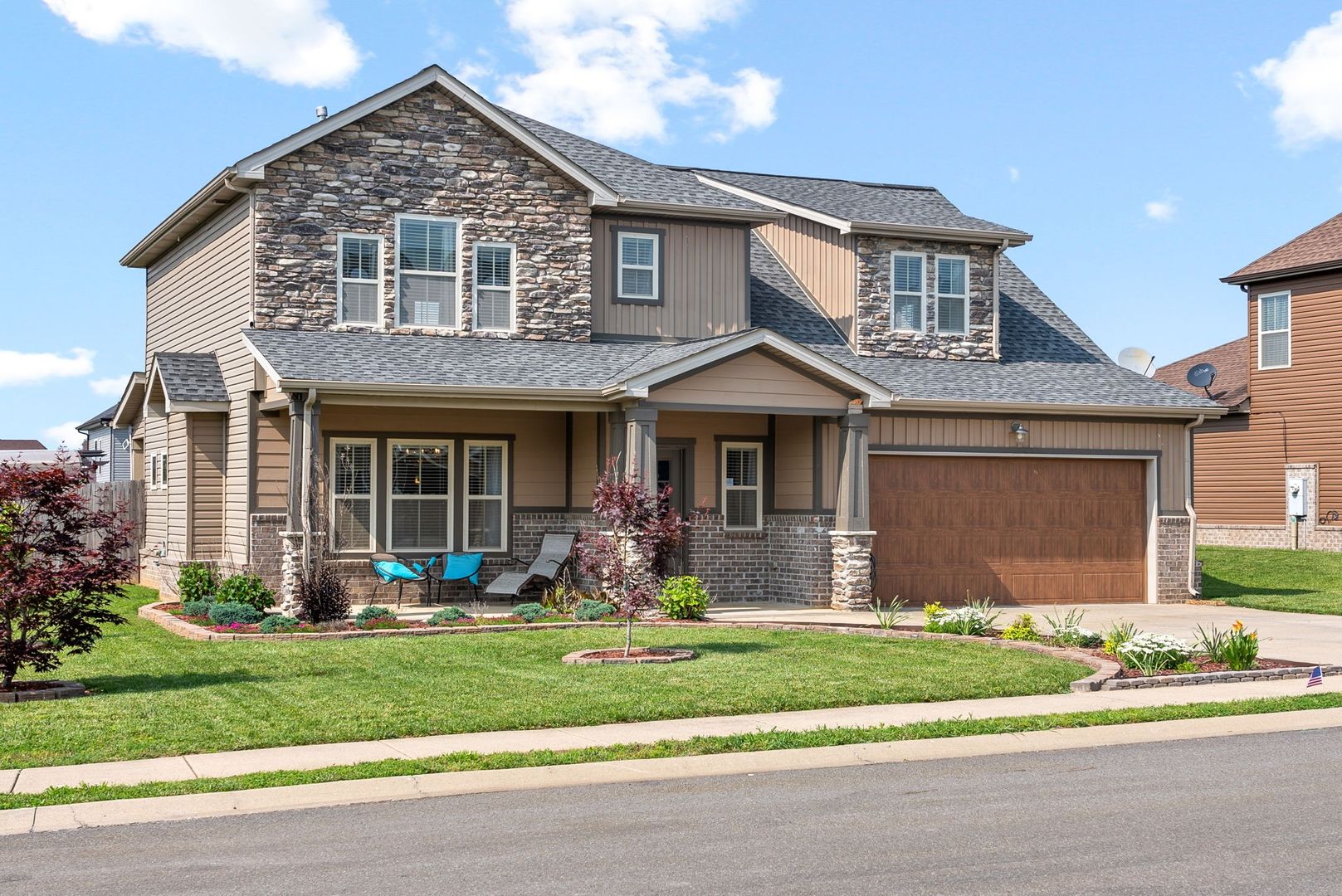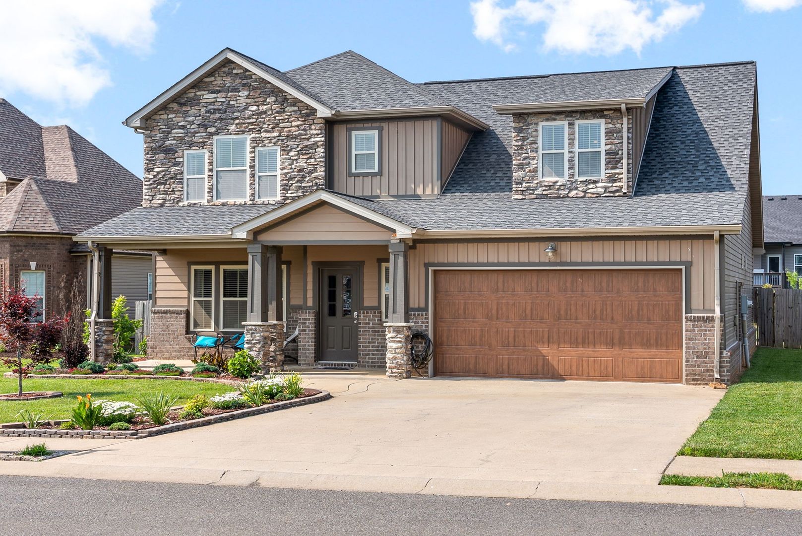 Located in the Farmington subdivision, this well-appointed 4-bedroom, 2 full bath, 2 half bath home offers a functional layout with standout features throughout. The primary bedroom is conveniently located on the main level and includes a spacious closet and a beautifully tiled shower. The main floor also features a laundry room near the garage, a half bath, and a stylish kitchen with granite countertops, pantry, double ovens, and an electric cooktop with hood vent.