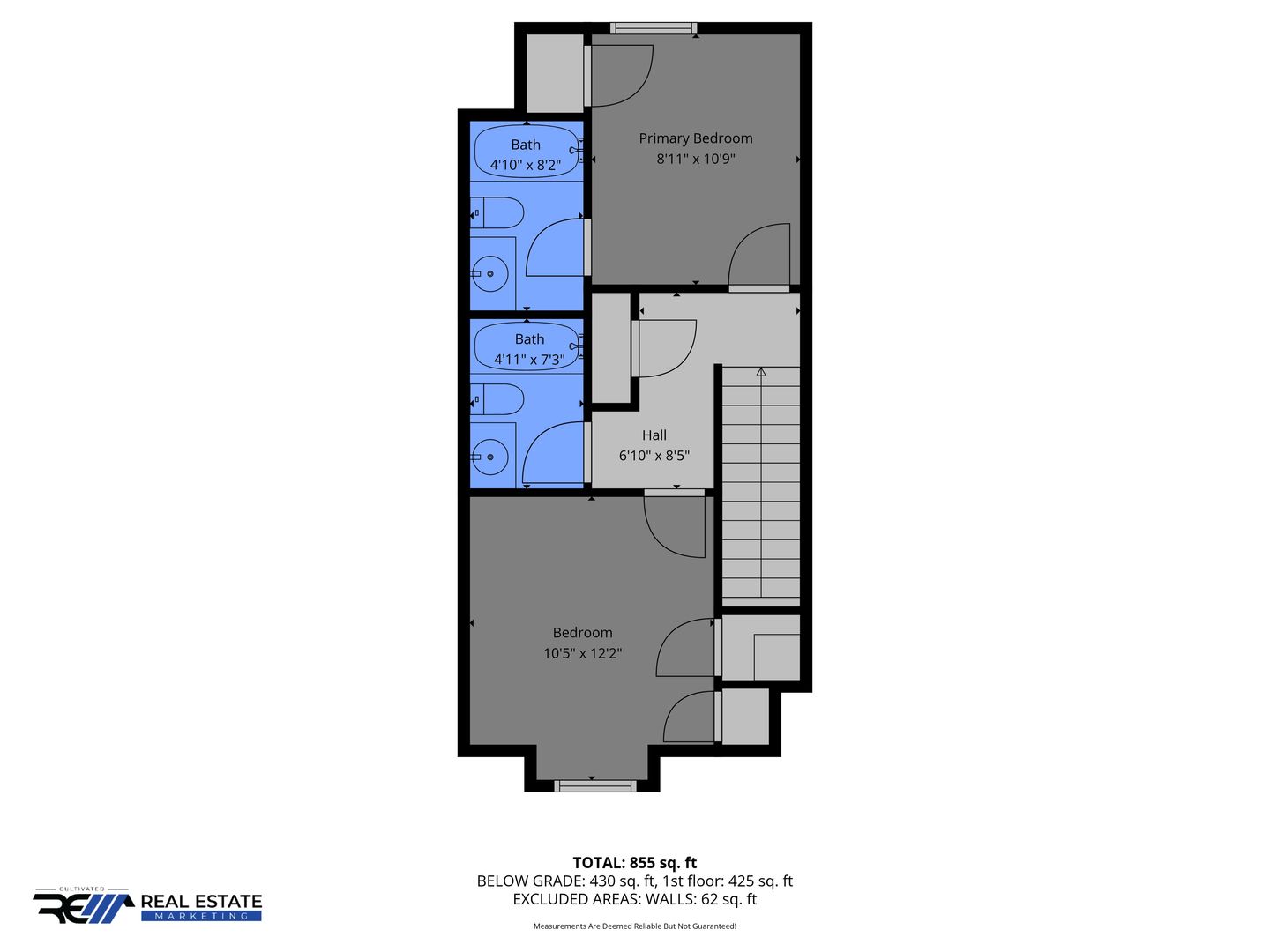 Both bedrooms are located upstairs, each with its own private full bathroom and ceiling fans for added comfort. A convenient half bath is located downstairs for guests.