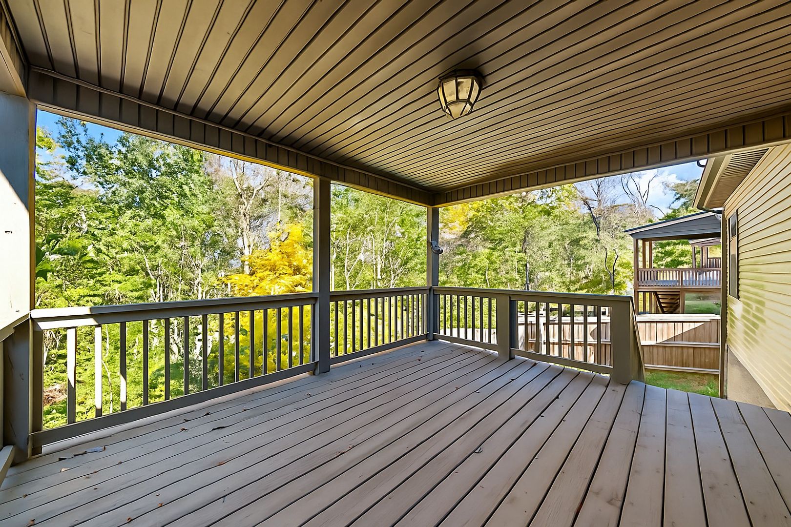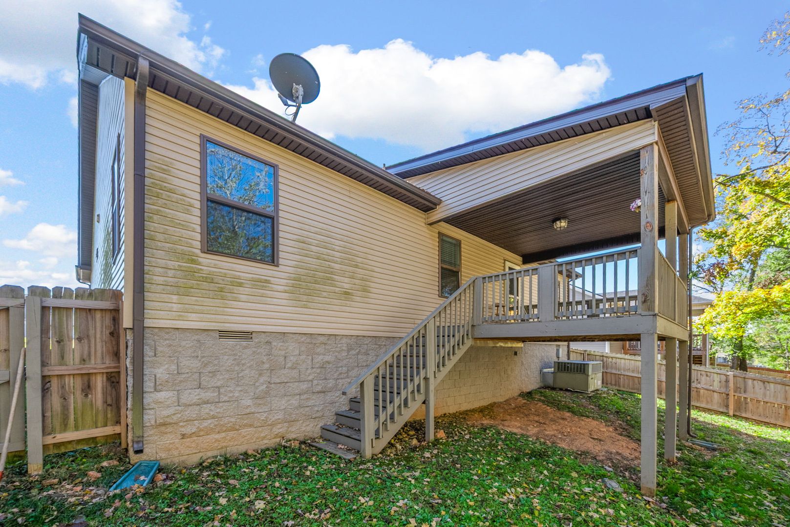 Step out back to enjoy a covered deck with stairs leading to a fully fenced backyard that is ideal for outdoor relaxation or gatherings with friends and family.